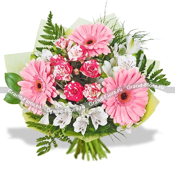 Спасибо за заботу - букет из розовых гербер и альстромерии (акционное предложение)